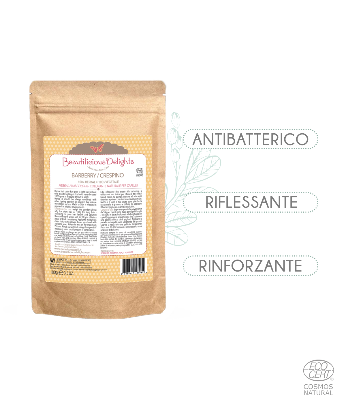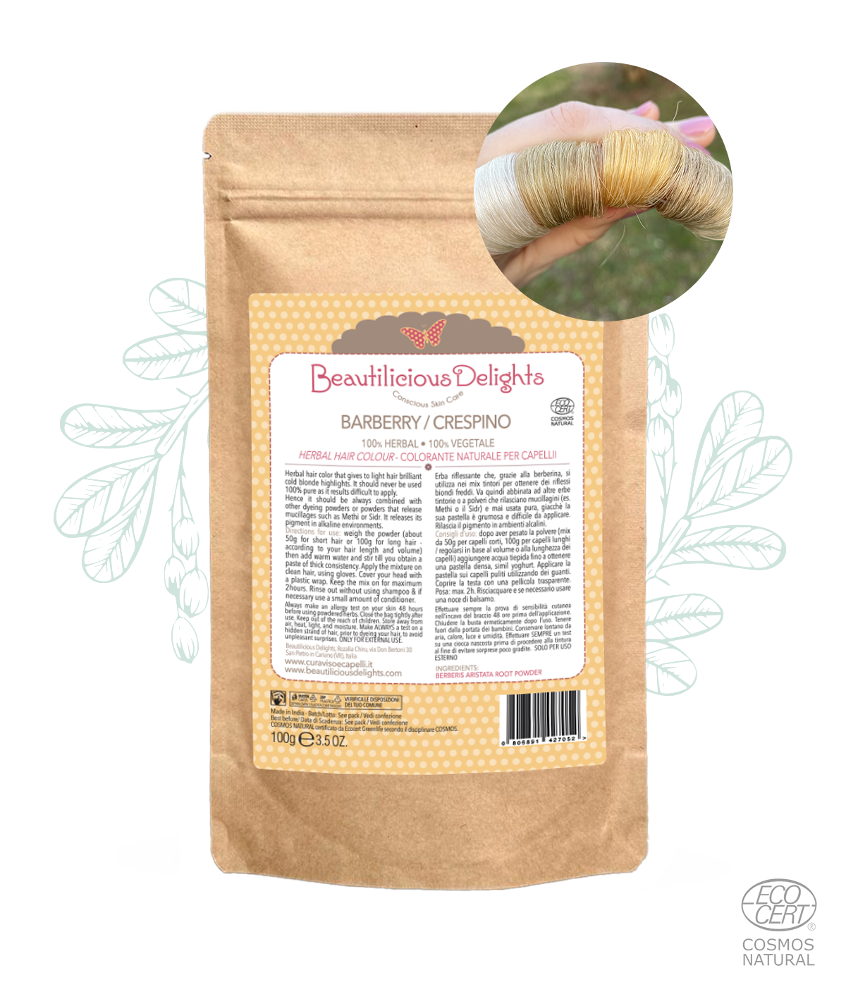 Il Crespino - pregiata erba riflessante per capelli biondi e chiari, 100% pura, si ottiene attraverso la polverizzazione della radice e corteccia della pianta Berberis Vulgaris.